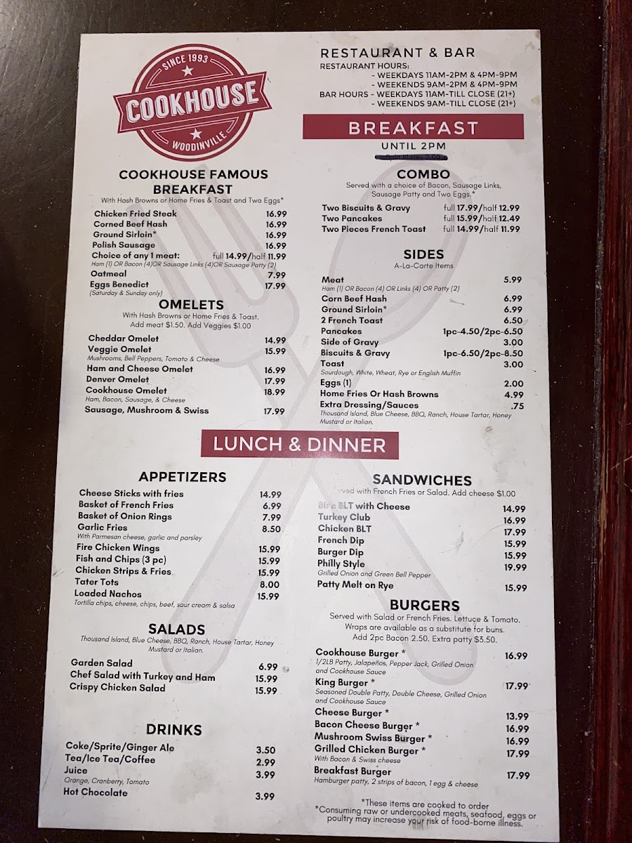 Cookhouse Restaurant & Bar Menu